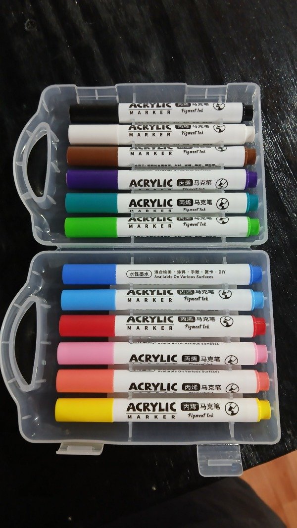 12 bolígrafos acrílicos especiales para la pintura de nuestras piezas.
